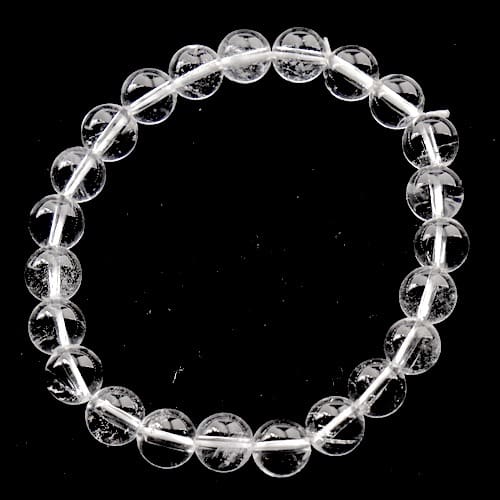Kristal heldere bergkristal armband met kralen van 8mm doorsnede. De kralen zijn geregen aan een rekbaar koord, waardoor de bergkristal armband eigenlijk altijd past. Je ontvangt een soortgelijke bergkristal armband als op de foto. De lengte is ongeveer 18cm.