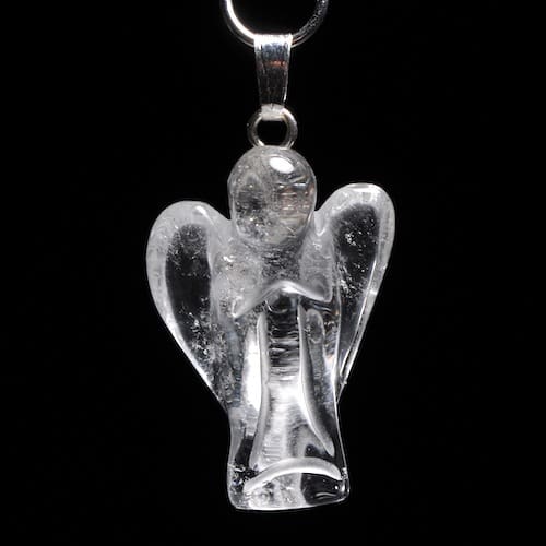 Kristal heldere bergkristal engel hanger. De bergkristal engel hanger wordt geleverd zonder koordje en kan prima als sieraad gedragen worden aan een zilveren ketting. Je ontvangt een soortgelijk exemplaar als de foto. De engel is ongeveer 2,5cm hoog.