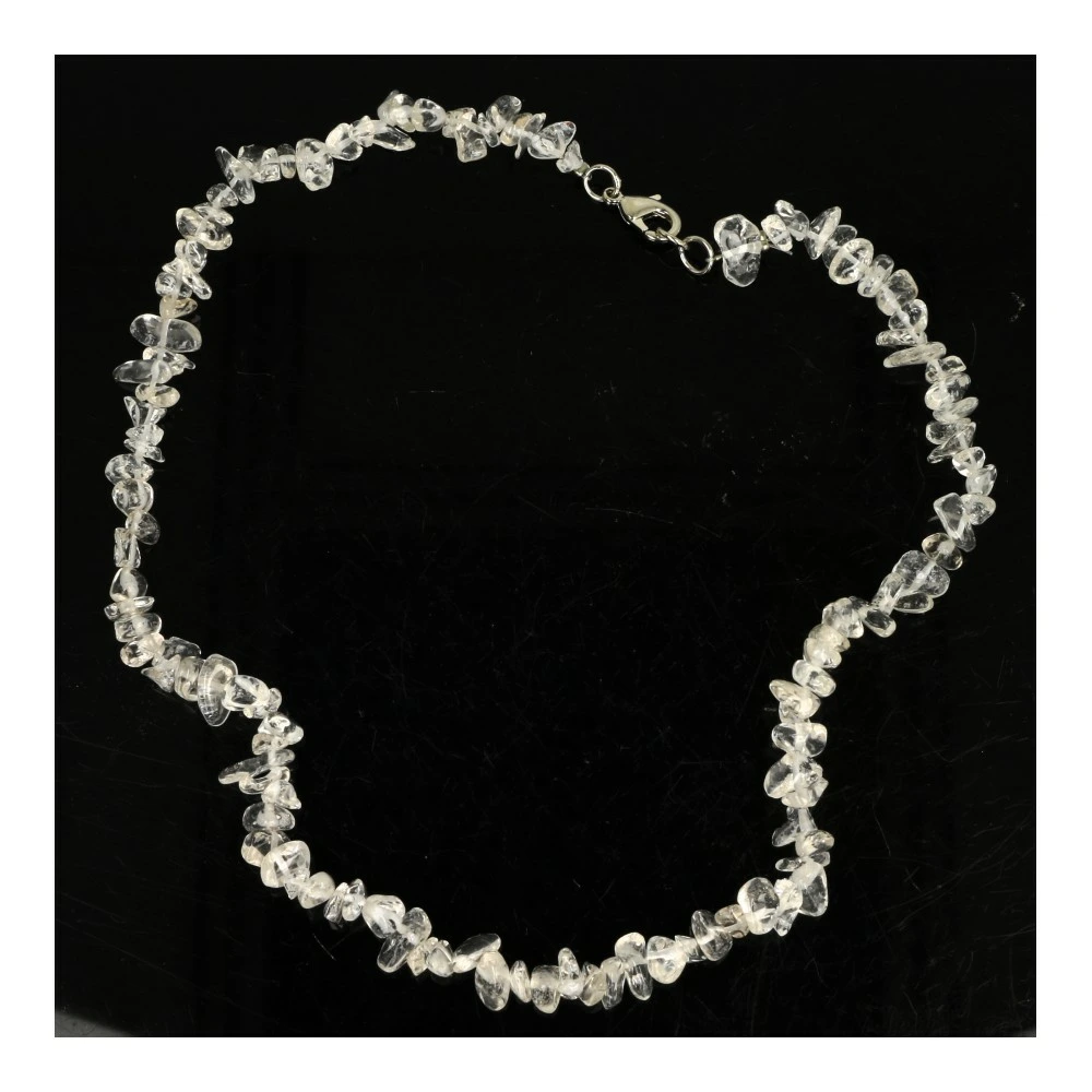 Kristal heldere bergkristal ketting gemaakt uit kleine gladde stukjes bergkristal (split), met sluiting en een lengte van 45cm. Je ontvangt een soortgelijke bergkristal ketting als op de foto.