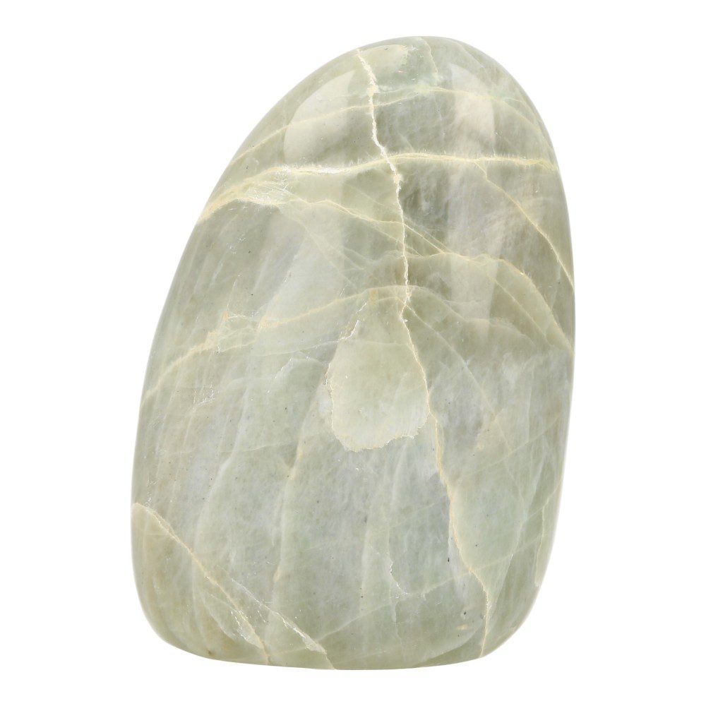 Mooie grijs-groene maansteen zuil ‘D’ van ca 111mm hoog, 79mm breed en 49mm dik. Deze licht grijze maansteen met een groene zweem is mooi glad gepolijst en staat rechtop. Je ontvangt de groene maansteen zuil van de foto.