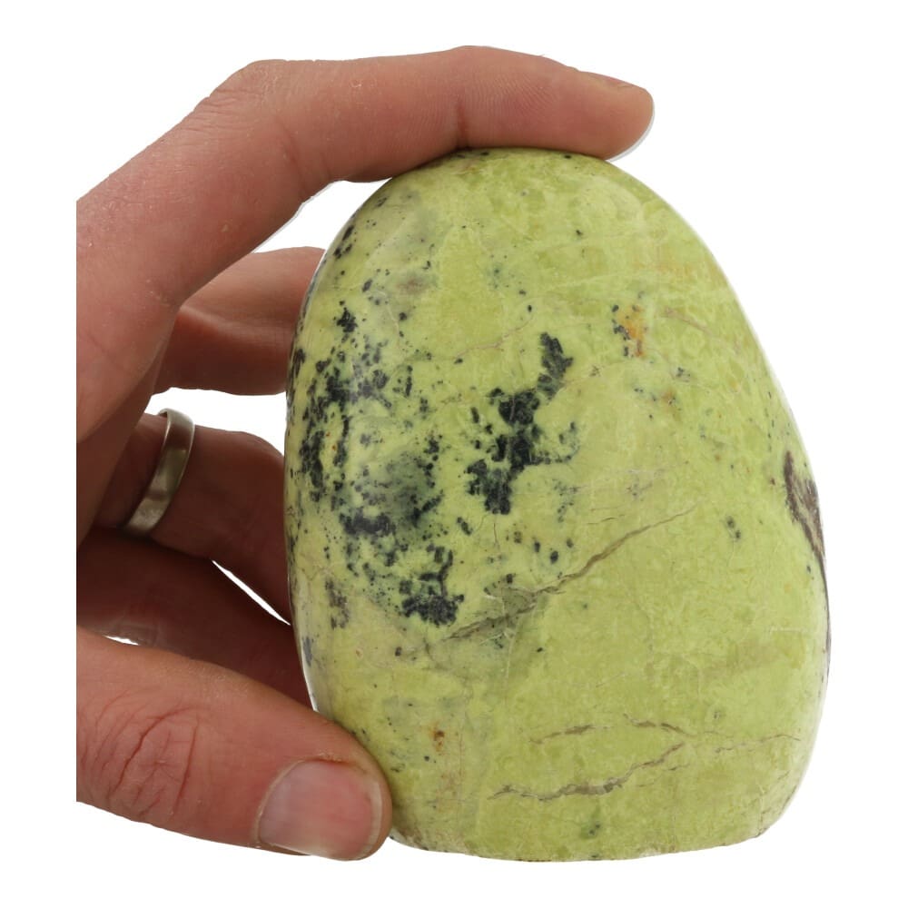Mooie licht groen geslepen groene opaal vrije vorm met afmetingen van circa 10cm hoog en 8cm breed. Deze fijne gladde vorm is mooi licht-groen van kleur. Mooi stuk groene opaal om een ruimte mee te vullen en iedereen in die ruimte zachtjes en liefdevol te ondersteunen.