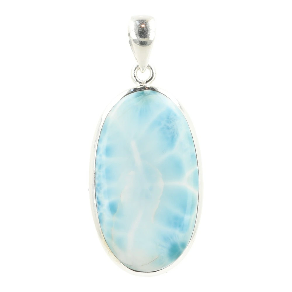 Mooie larimar hanger in zilver ‘nr9’ uit de Dominicaanse Republiek. Deze fraaie larimar steen in de hanger heeft een afmeting van 34mm hoog en 19mm breed. De hanger is gemaakt van 925 sterling zilver van juwelierskwaliteit. Je ontvangt deze larimar hanger in zilver van de foto.