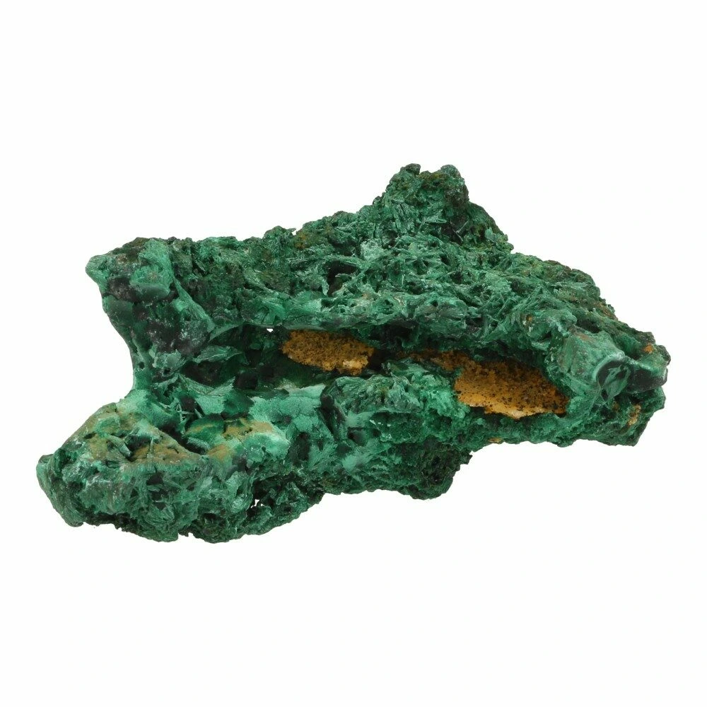 Prachtige diepgroene fluwelen malachiet ruw ‘nr3’ uit Democratische Republiek Congo. We hebben een aantal van deze unieke stukken fluwelen malachiet kunnen bemachtigen met heldergroene malachiet naaldjes op bruin moedergesteente. De schittering van de naaldjes varieert met de lichtinval. Dit stuk heeft een grillige vorm waarbij het heldere groen van het malachiet fraai afsteekt tegen het bruine moedergesteente. Met een aantal holle stukken waarbij de heldergroene vezels in waaiers zijn gevormd. De afmeting van dit fraaie stuk is circa 9,5cm lang, 5cm breed en 4cm hoog. Je ontvangt het stuk fluwelen malachiet van de foto.