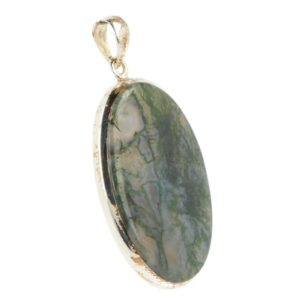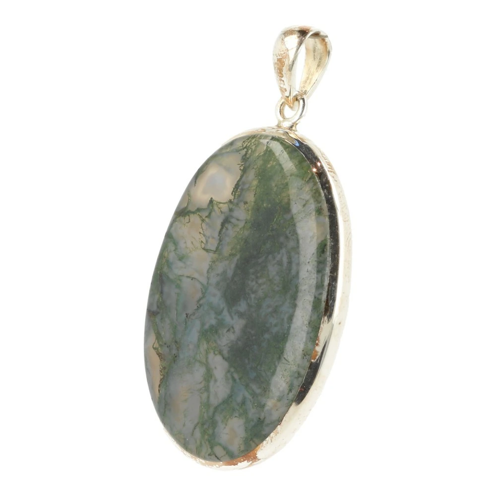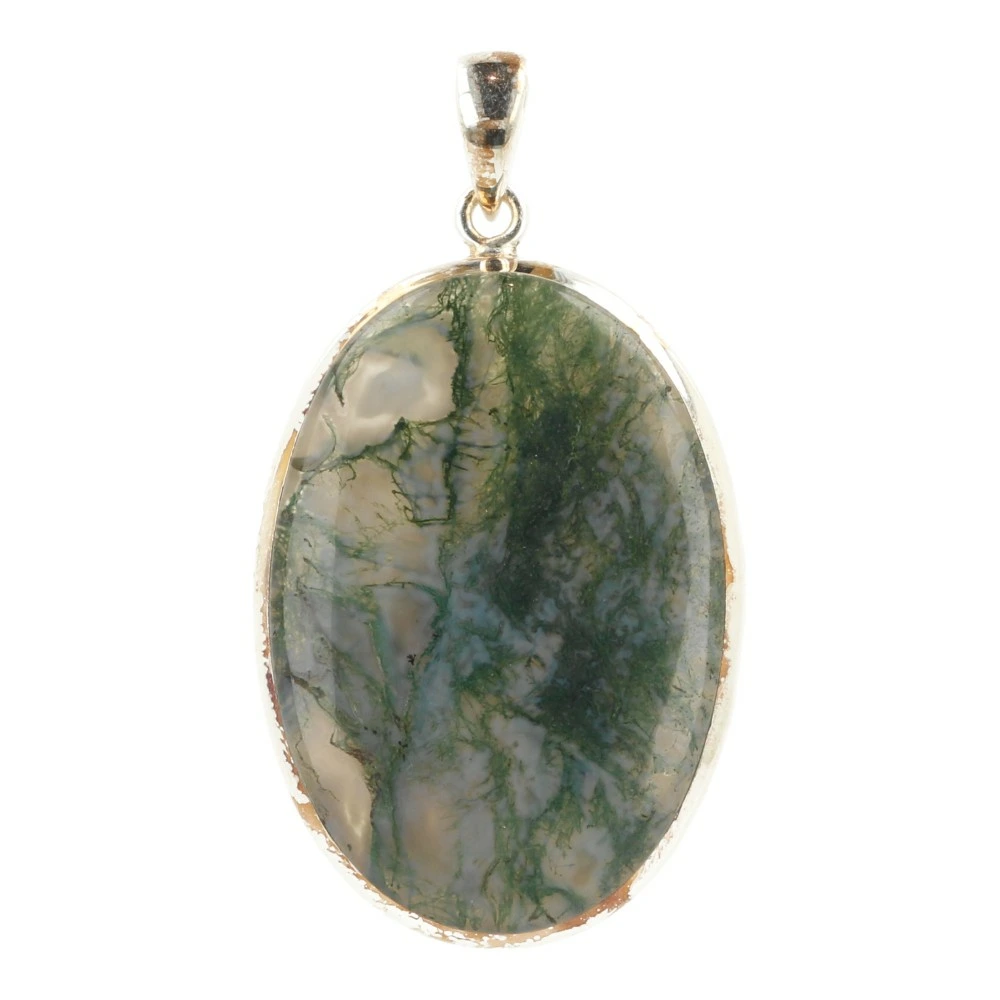 Fraaie semi-transparante mosagaat hanger in zilver. Deze mosagaat is gevat in juwelierskwaliteit zilver (925 sterling). De afmeting van de mosagaat in de hanger is ongeveer 42mm hoog en 28mm breed. Je ontvangt de mosagaat hanger in zilver van de foto.
