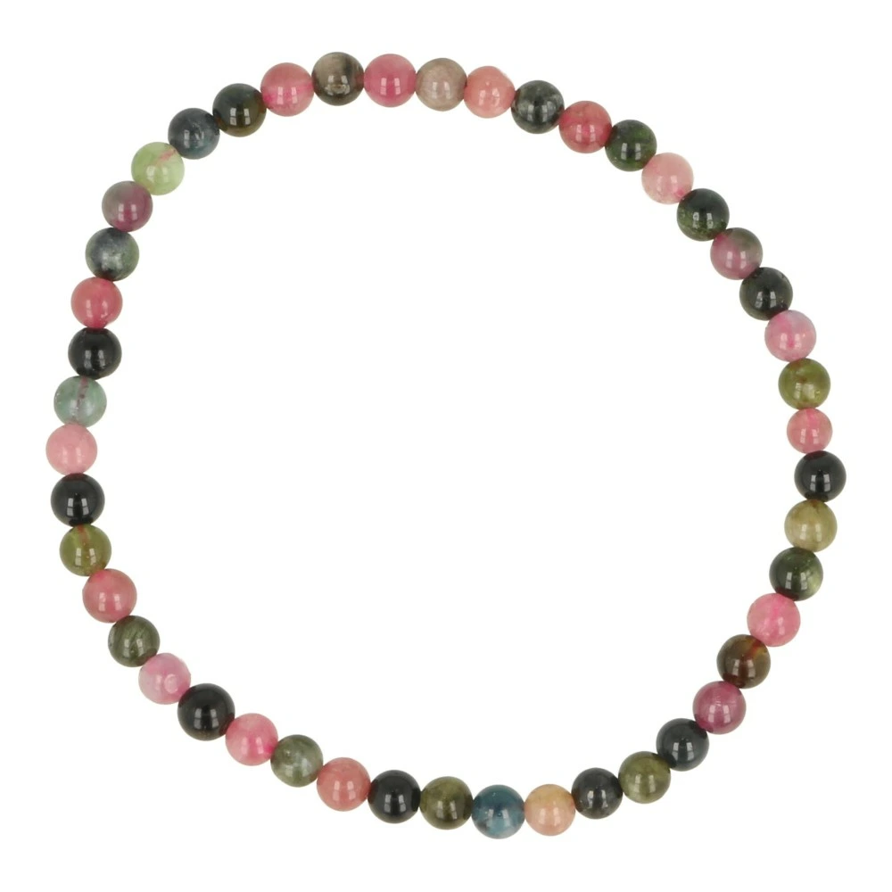 Mooie A-kwaliteit toermalijn armband met ronde kralen van 4mm met verschillende kleuren toermalijn op rekbaar koord. Deze toermalijn armband is vooral geschikt voor vrouwen of heren met een smallere pols, de lengte past bij een polsomtrek van circa 17-18cm. De armband bestaat uit rode, groene, blauwe en zwarte toermalijn. Omdat de armbanden voor het grootste gedeelte uit rode en groene toermalijn bestaan, is hier de werking van watermeloen toermalijn beschreven. Deze bestaat namelijk ook uit rode en groene toermalijn.