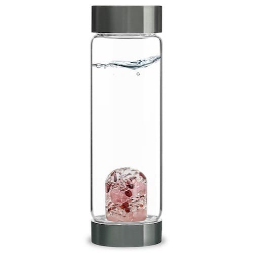 Deze VitaJuwel ViA Love drinkfles van 0,5l bevat de edelstenen rozenkwarts, granaat en bergkristal. Deze hoogwaardige glazen drinkfles met inhoud van 500ml bevat een handgemaakte glazen ruimte gevuld met edelstenen. Hierdoor wordt je drinkwater opgeladen met de kwaliteit van de edelstenen.
