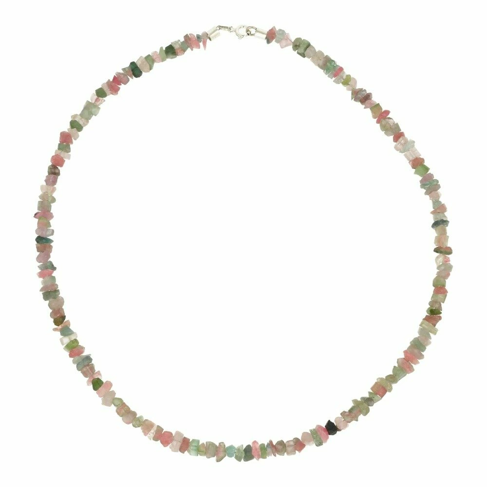 Mooie watermeloen toermalijn ketting van 45cm lengte met zilveren oogje. Deze watermeloen toermalijn ketting is gemaakt uit ruwe watermeloen toermalijn kristallen die enigszins zijn afgerond, zodat de ketting wel prettig draagt. Uniek handwerk uit Pakistan! Je ontvangt een soortgelijke watermeloen toermalijn ketting als op de foto, de kwaliteit is zeer gelijkwaardig.