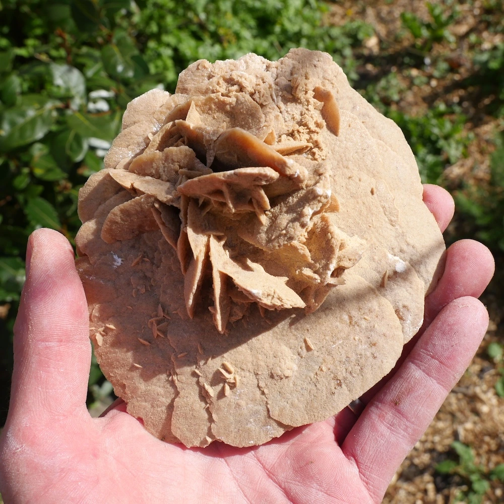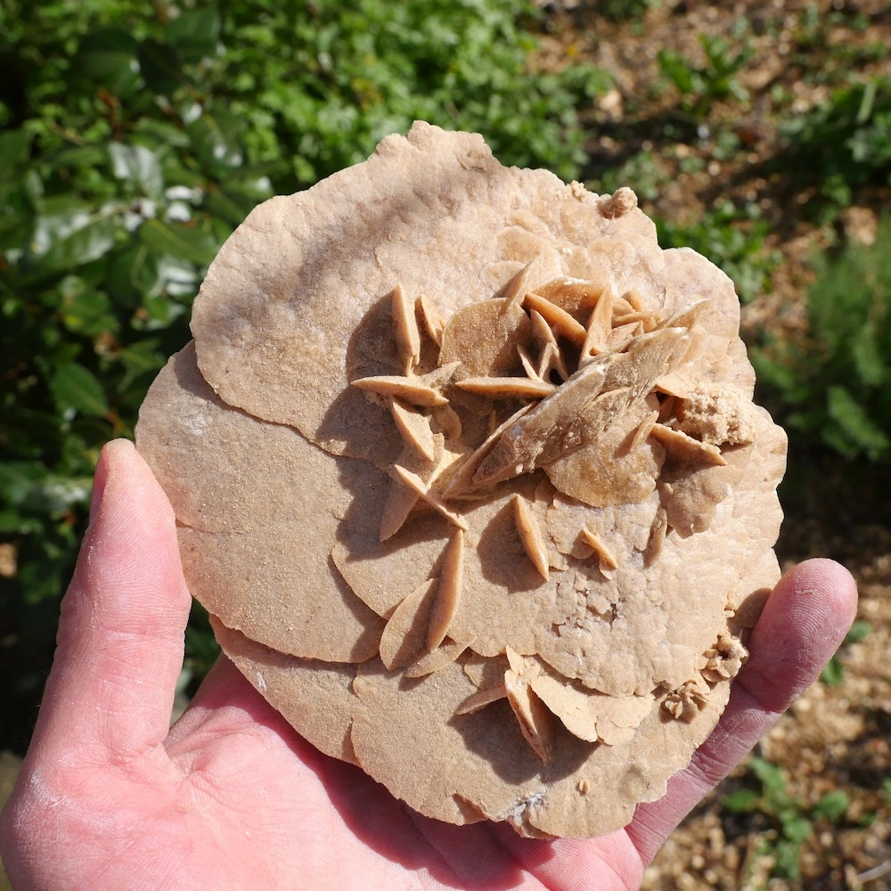 Fraaie woestijnroos ‘nr6’ met een afmeting van ongeveer 13 x 14 x 7cm uit Tunesië. Deze woestijnroos heeft een fraaie vorm met verfijnde ‘rozen’ aan beide zijdes en kan ook op beide zijdes liggen. Ook heel fraai in een standaard, neem voor de mogelijkheden even contact met ons op. Een uniek stuk zo uit het zand. Je ontvangt de woestijnroos van de foto.